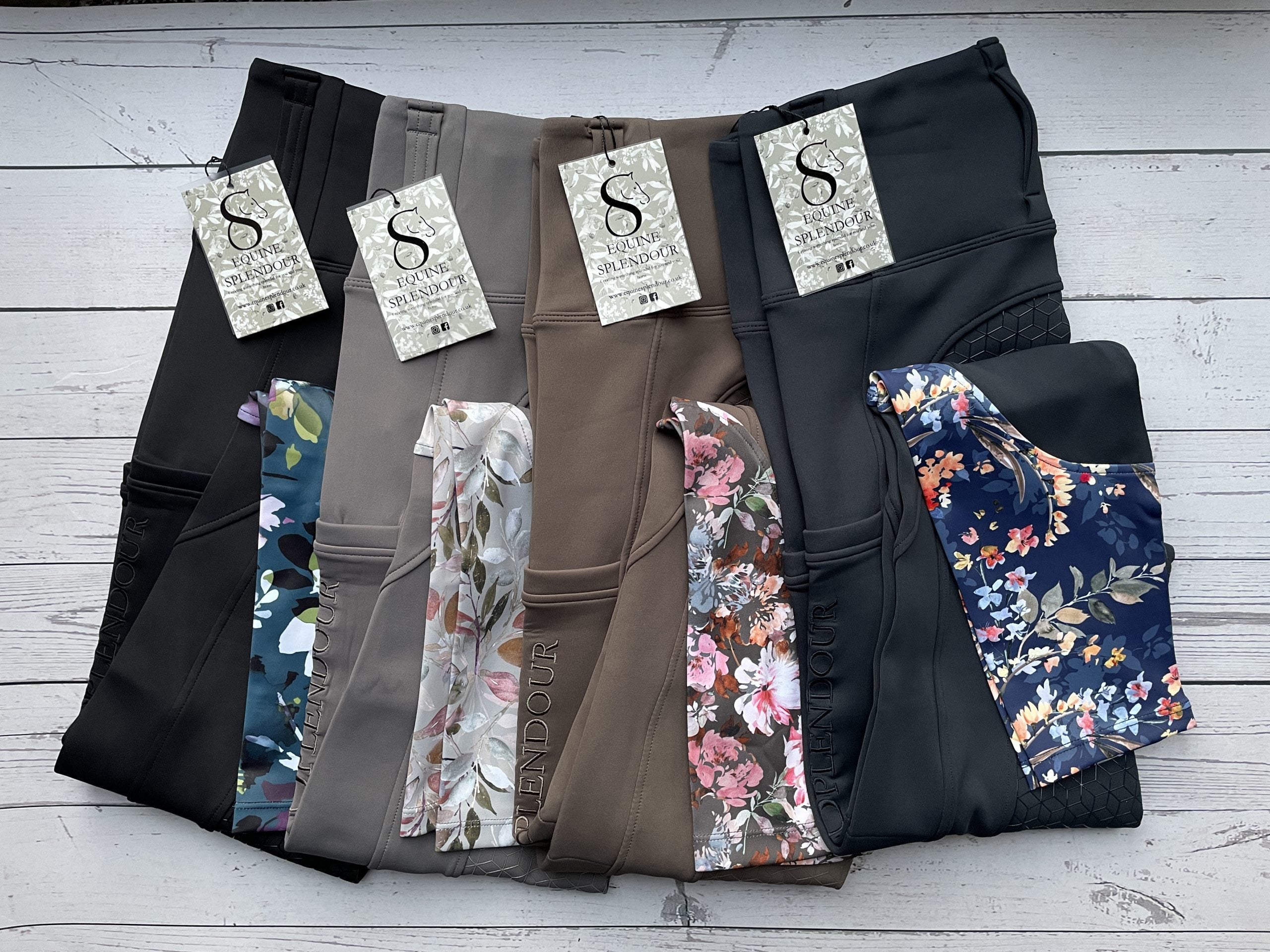 Slate Grey Floral All Season Riding Leggings/Tights (Non Silicone) - Water Resistant