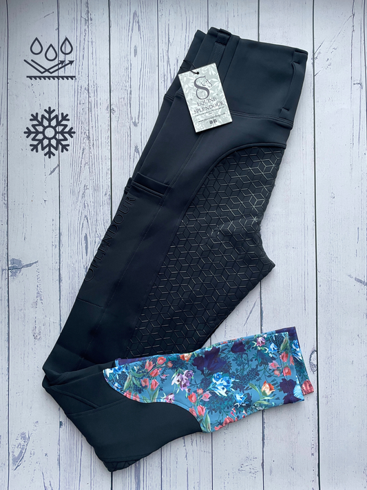 Botanic Navy All Season Full Seat Riding Leggings/Tights - Water Resistant