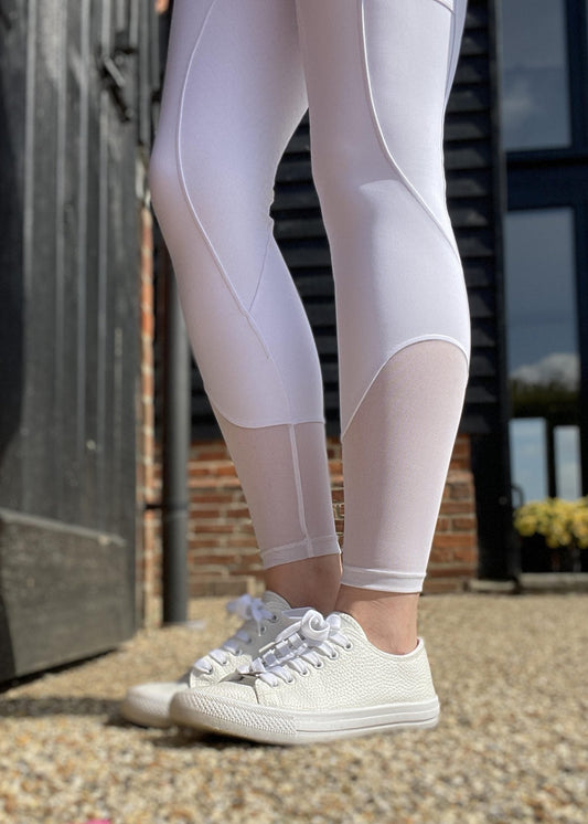 White Competition Riding Leggings/Tights Vented Sock (Non Silicone)