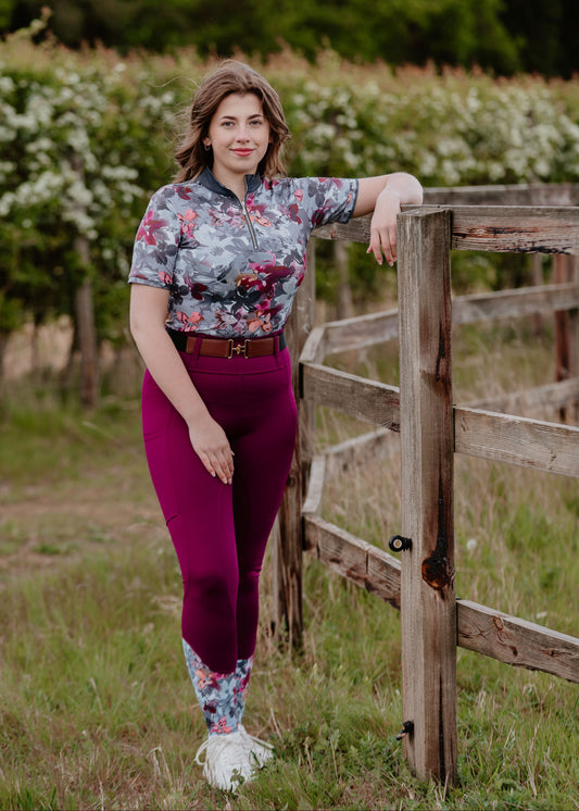 Slate Grey Floral Standard Riding Leggings/Tights (Non Silicone)