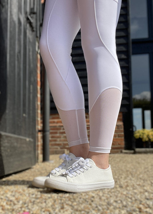White Competition Full Seat Riding Leggings/Tights Vented Sock