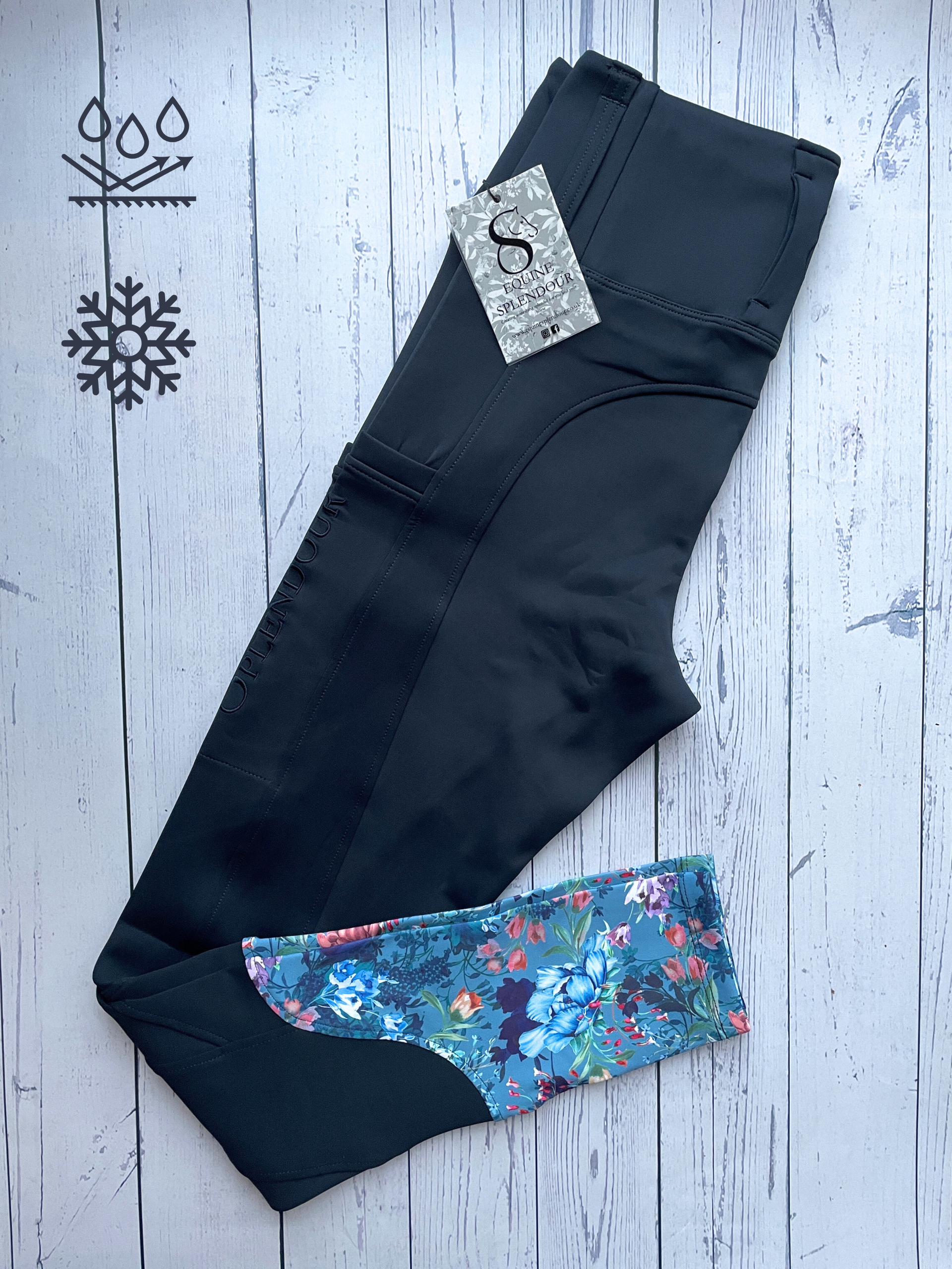 Botanic Navy All Season Riding Leggings/Tights (Non Silicone) - Water Resistant