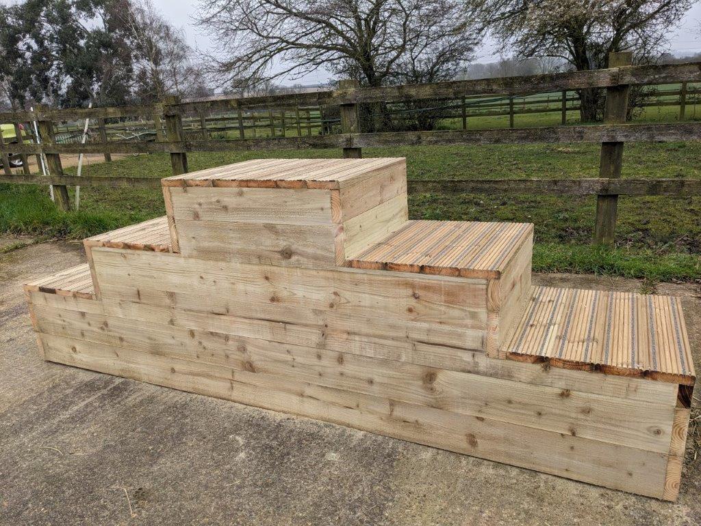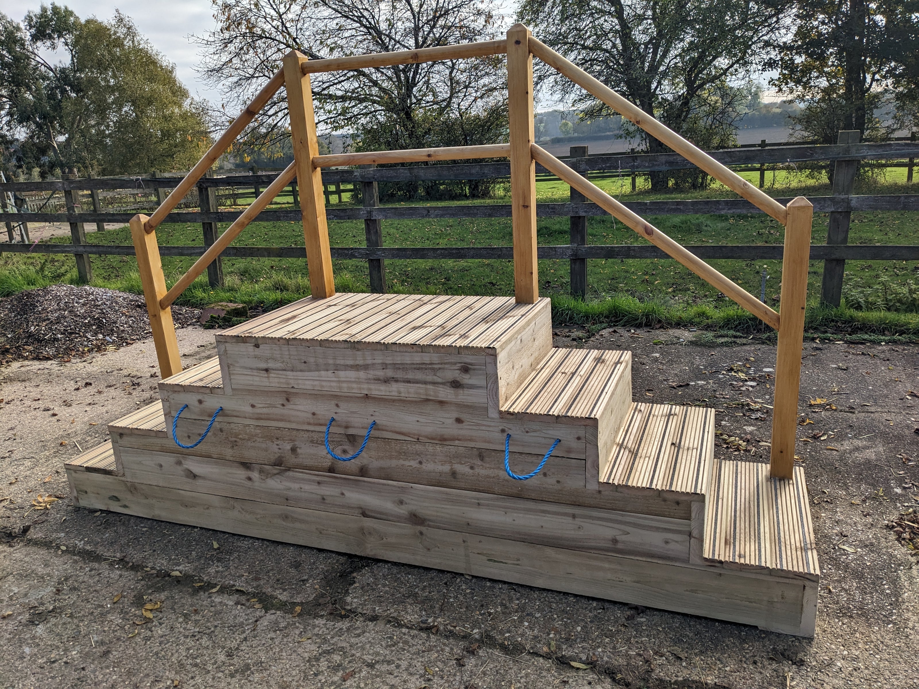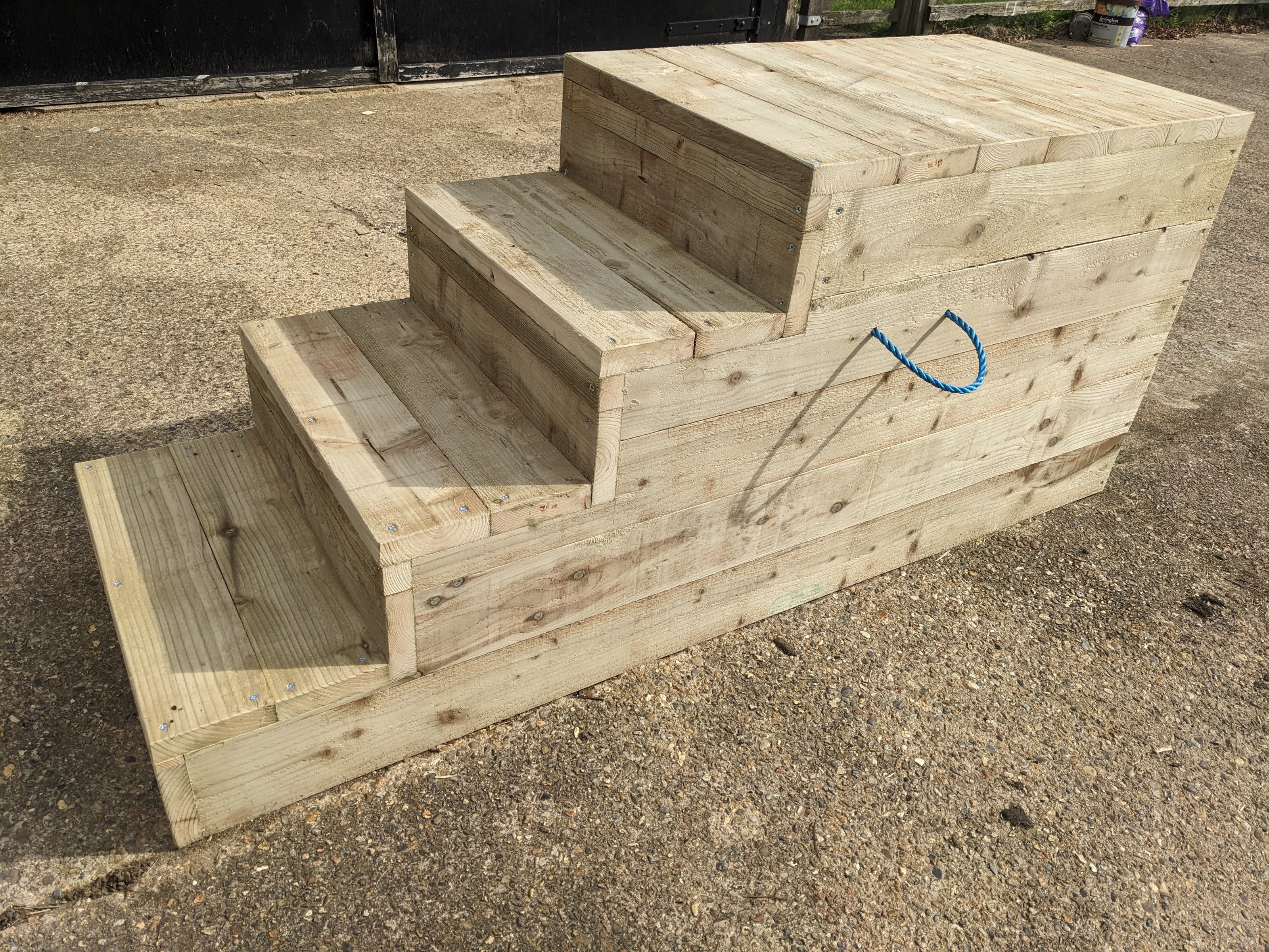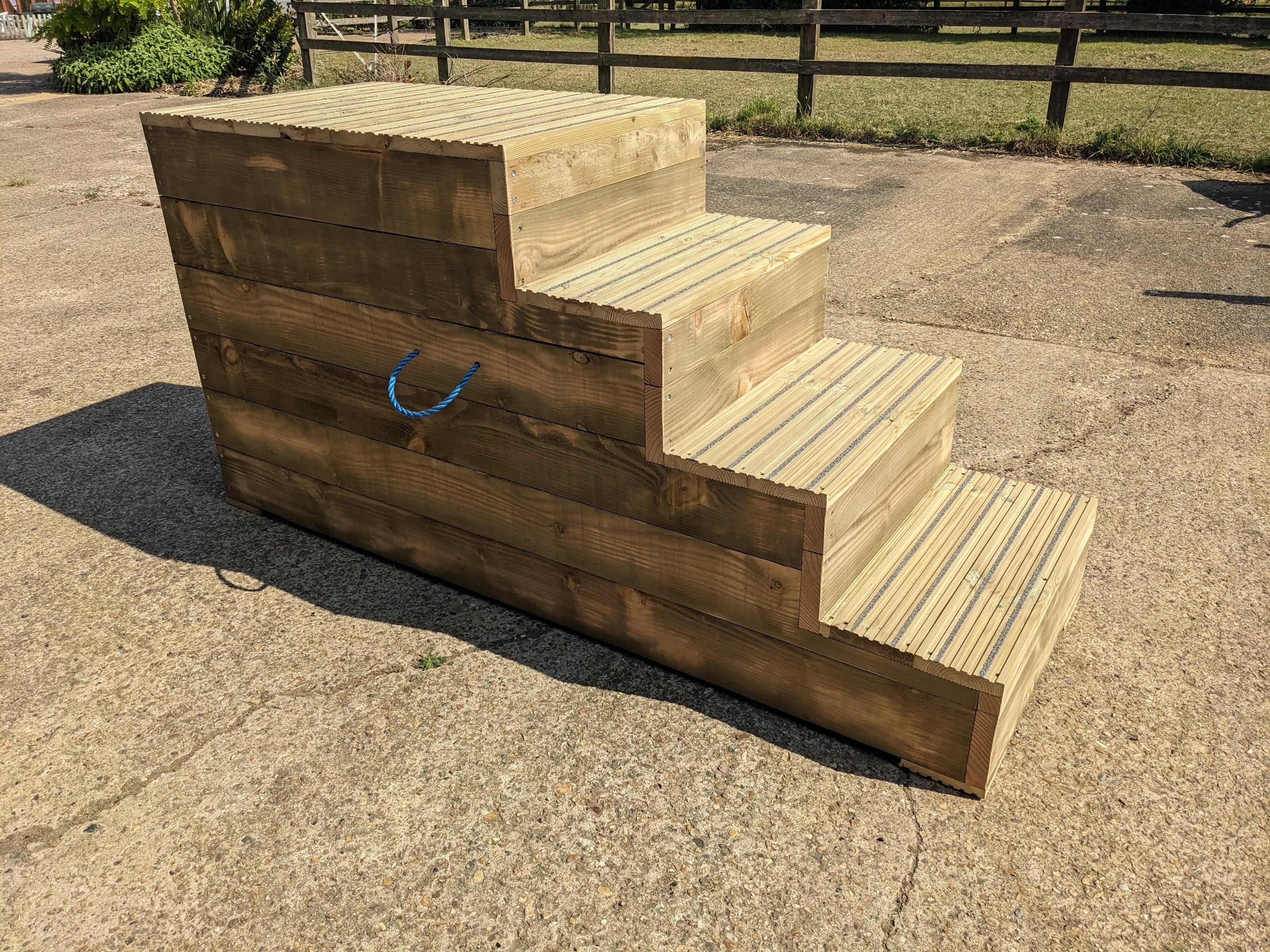 These are new, extra large, heavy duty mounting blocks made of 38mm thick sawn pressure treated timber with deep 300mm steps for easy climbing. Absolutely fantastic quality and craftsmanship and made here in the Suffolk countryside at Equine Splendour HQ!