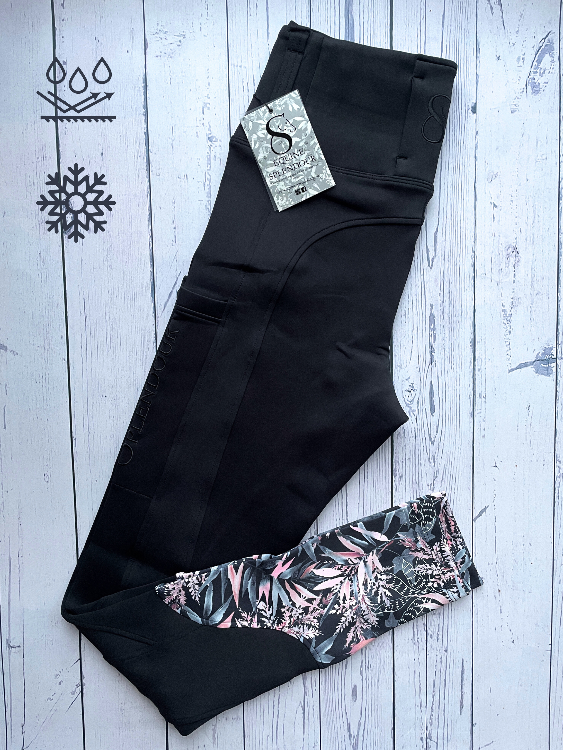 We are home of the florals! Our leggings have a beautiful floral accent on their sock which looks really beautiful as a stand alone feature or you can match with one of our base layers for a stunning outfit guaranteed to turn heads!
