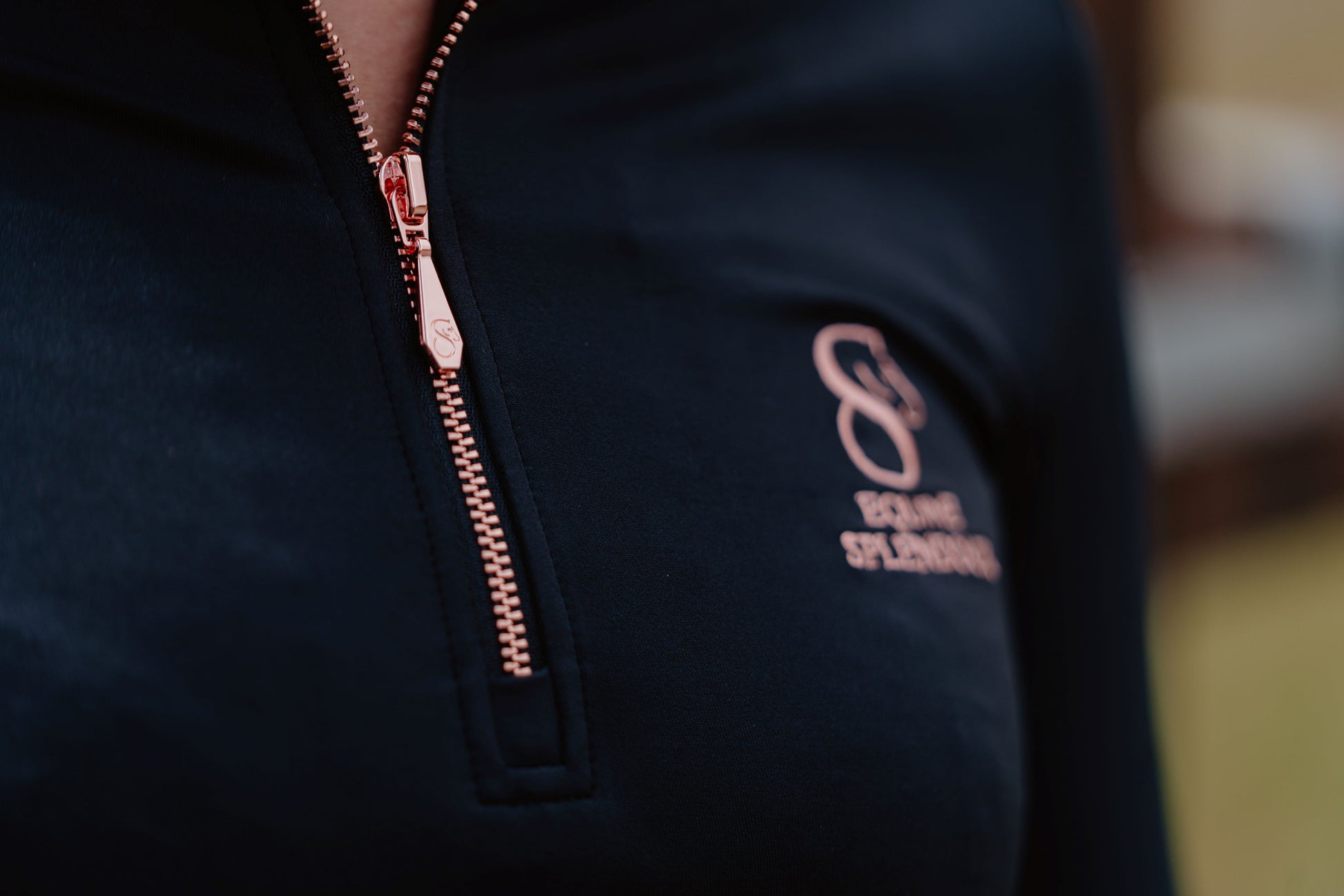 On the back is a lovely soft mesh fabric to help with ventilation and avoid that sweaty back, stitched with flatlock stitching so it's super comfortable against the skin. We've then finished the piece with a logo branded zip, what is not to love!