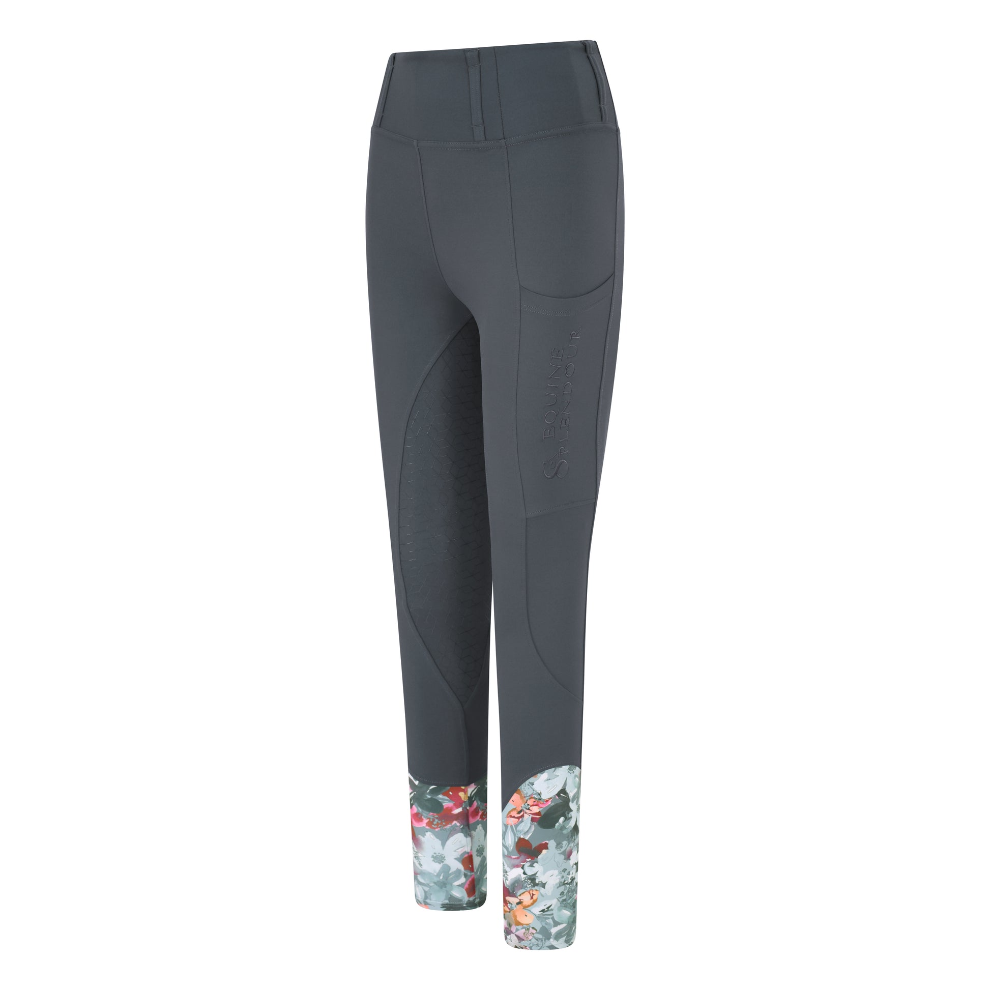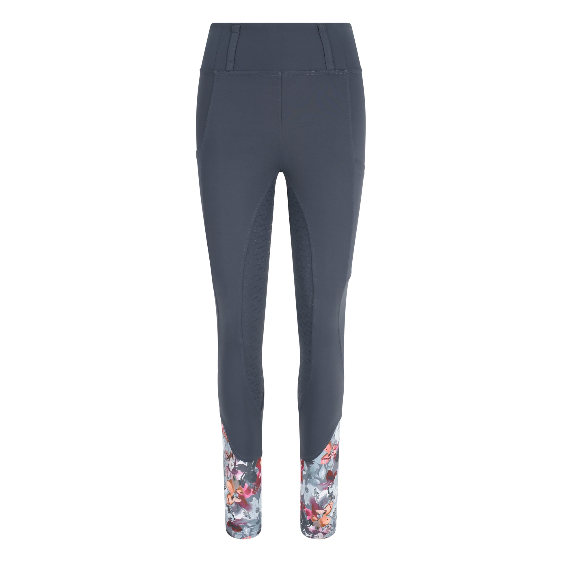 Slate Grey Floral Full Seat Standard Riding Leggings/Tights
