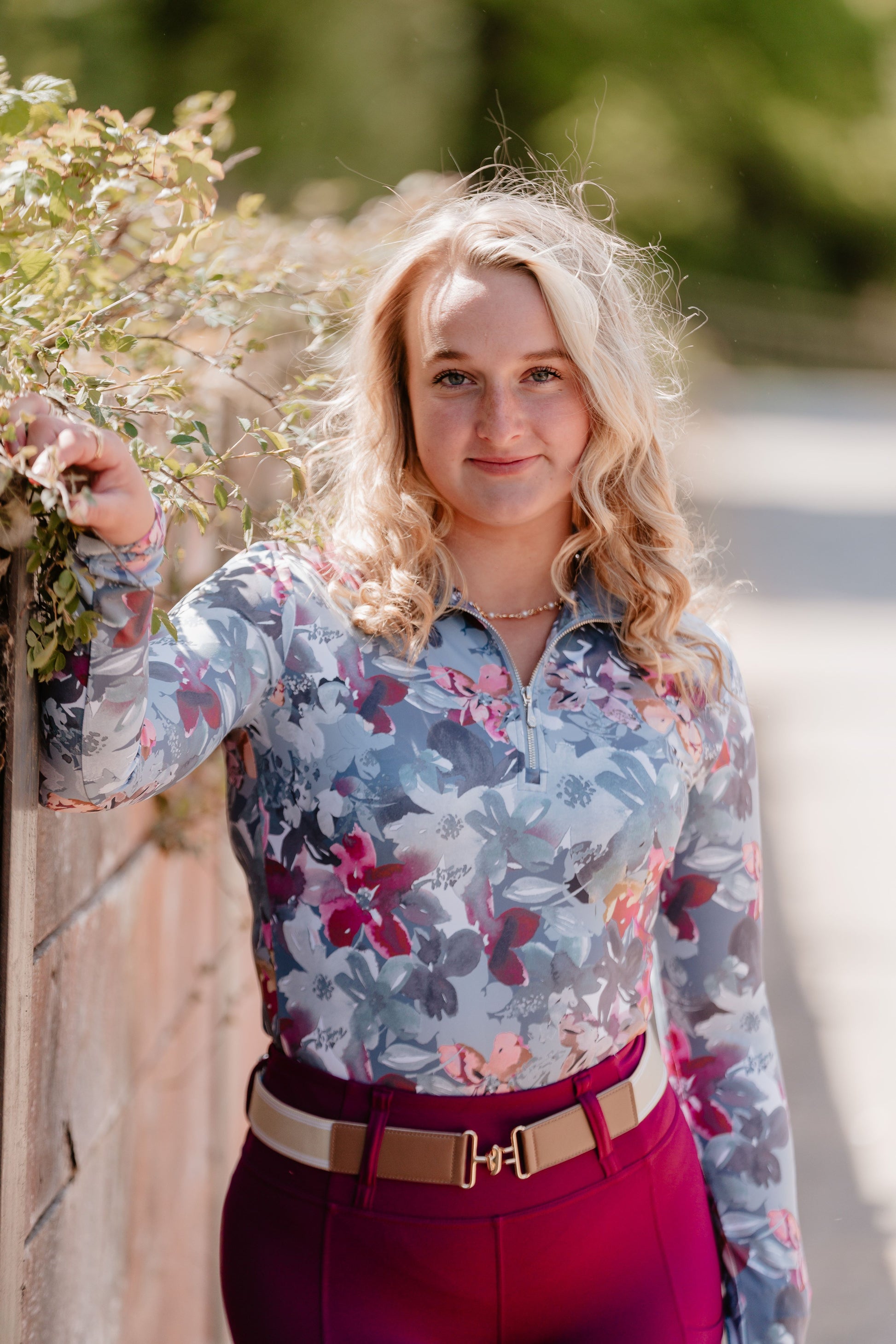 Please note, due to manufacturing printing for this batch, this base layer pattern will perfectly match the All Season Slate Grey Floral and and the Supertherm Slate Grey Floral leggings, it is a slightly different shade to the summer/standard Slate Grey leggings and Wild Magenta.