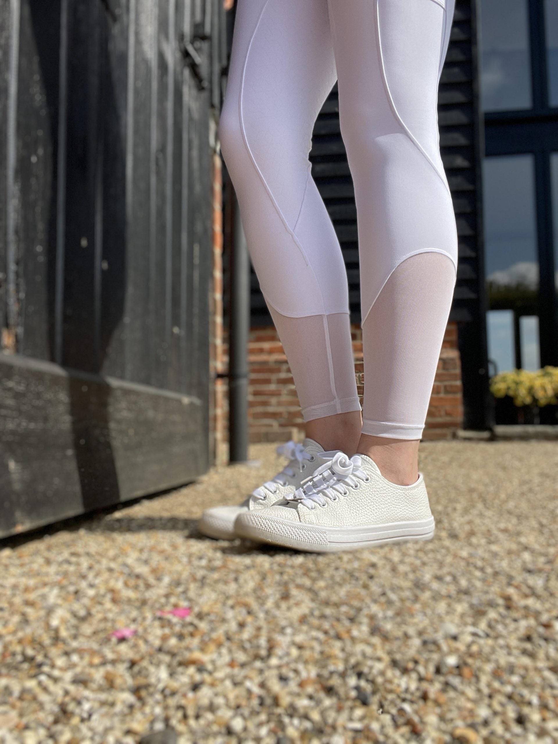 White Competition Full Seat Riding Leggings/Tights Vented Sock